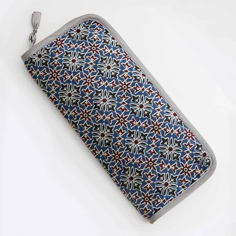 Lantern Moon valmistab kauneid, kvaliteetseid ja jätkusuutlikke käsitöötooteid. See kaunis Lantern Mooni varraste hoidik on valmistatud modaalsatiinkangast. Spetsiaalne Ajraki muster on kangale kantud traditsioonilise plokktrükitehnika abil. Sellel pehme voodriga hoidikul on 16 taskut, mis sobivad erineva suurusega ja pikkusega ringvarrastele, ning 2 väiksemat taskut aksessuaaride, näiteks silmusemärkijate jaoks. Ristkülikukujuline hoidik on lukuga suletav ja tarnitakse ilma varrasteta.